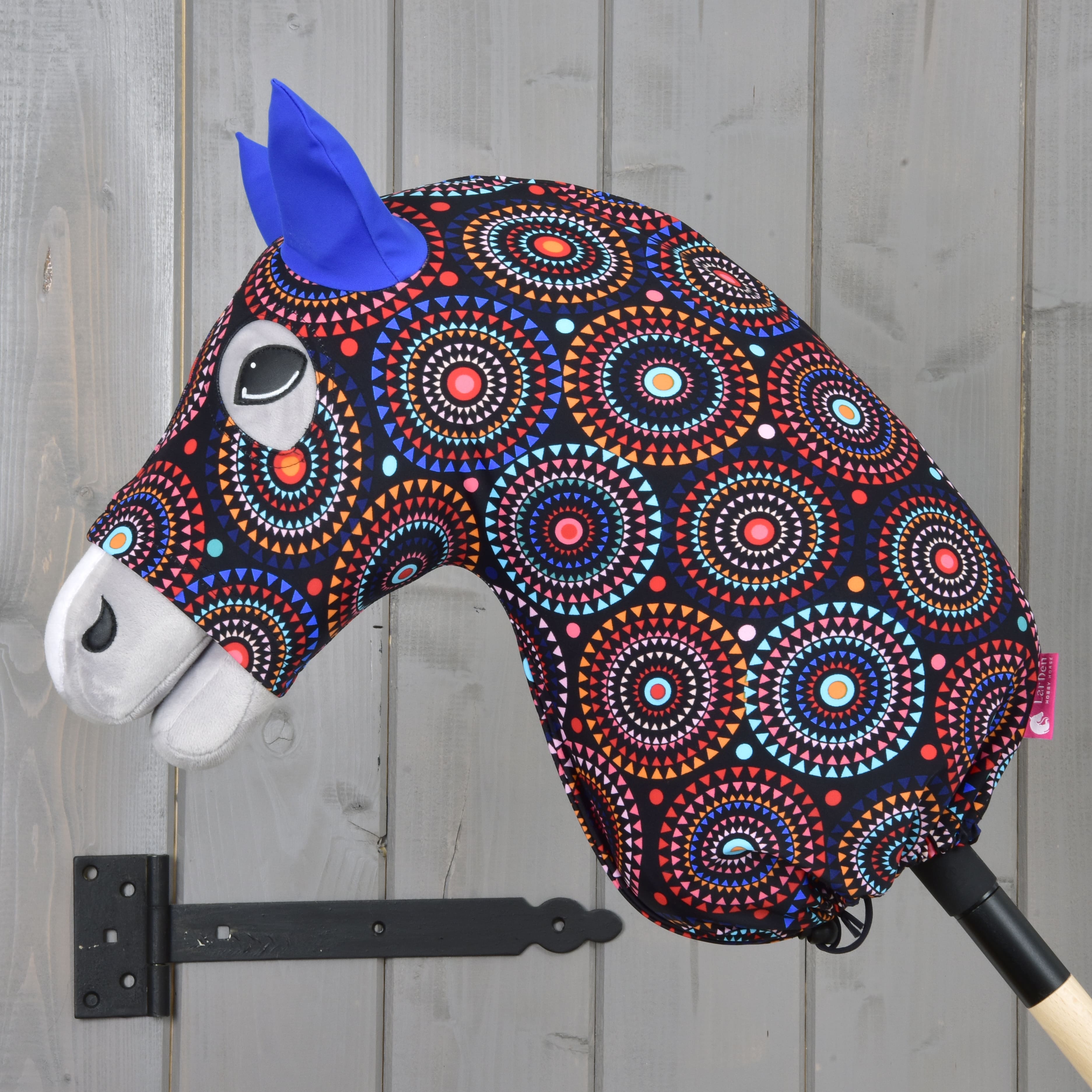 This protective suit is made of high-quality Lycra and therefore adapts better to the shape of the horse. Great attention has been paid to the eye holes and the correct size of the ears. The LarDen protection suit is easy to put on and easy to maintain. The lower part of the suit is equipped with a drawstring and a press stud for better tightening. You can choose from different designs to suit your Hobby Horse.