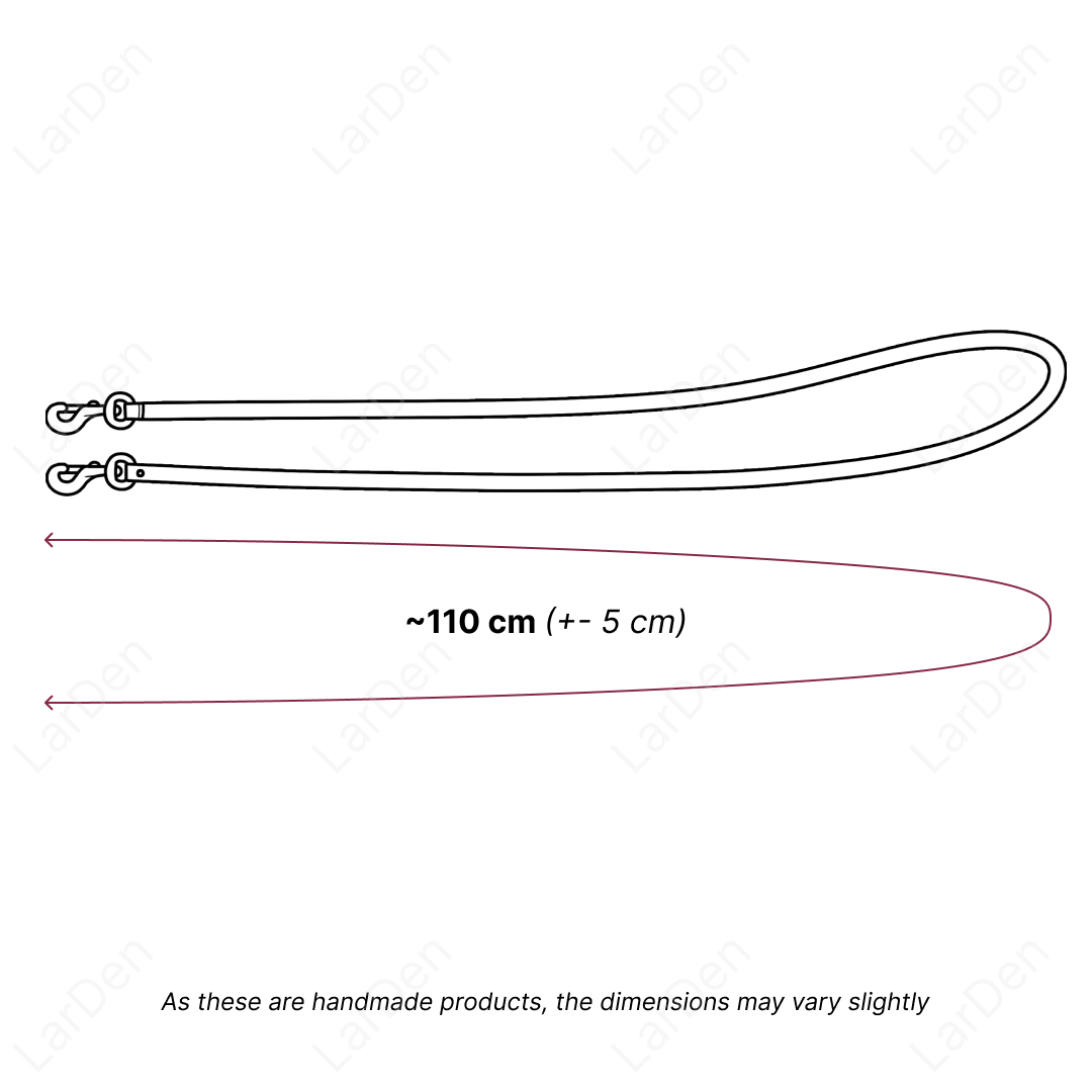 Our LarDen reins are ca. 110 cm long and fit all Hobby Horses. For a better idea, you will find the dimensions marked in the picture.