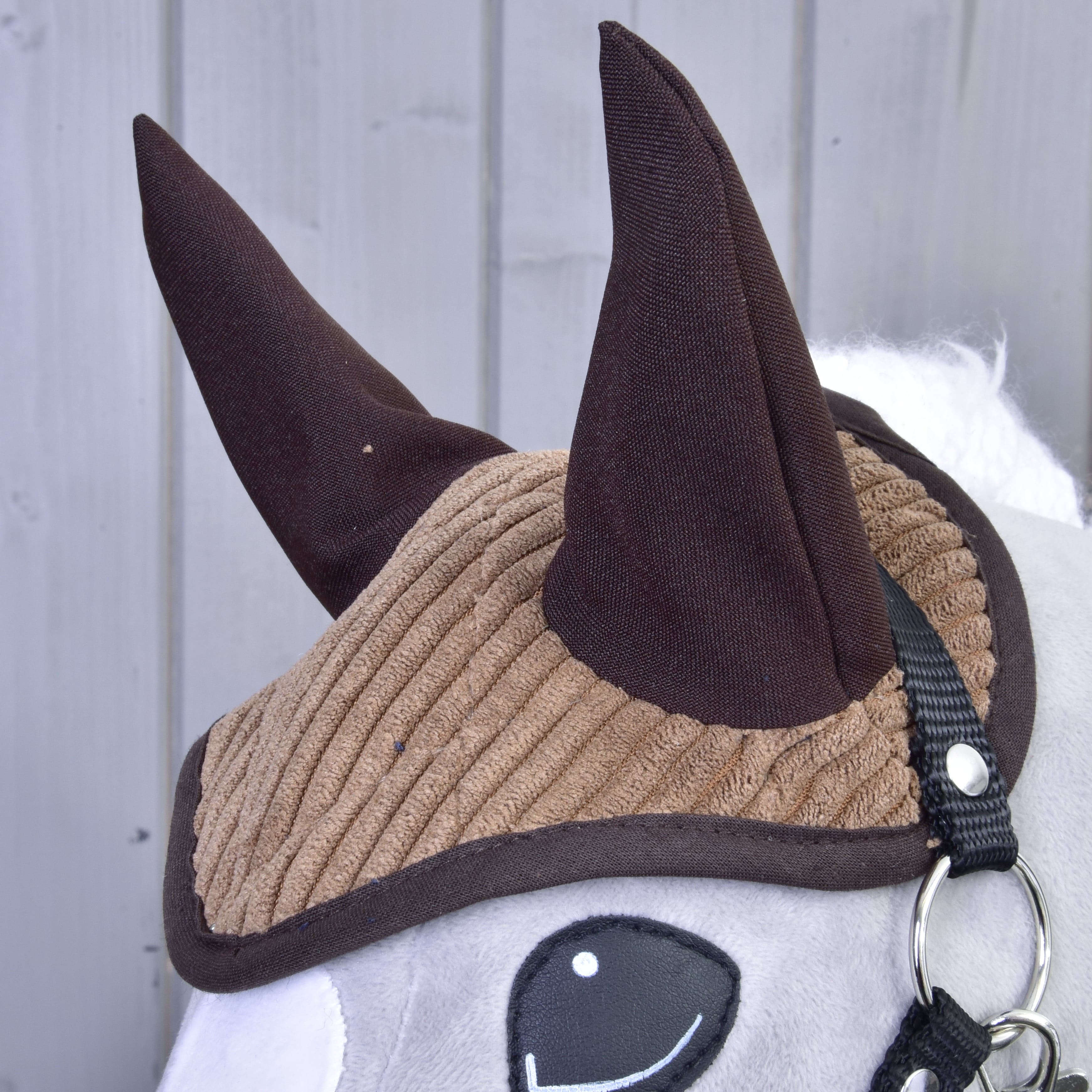 Our Hobby Horse ear bonnet and blanket sets are available in sizes S and M and fit LarDen horses perfectly. Simply choose the right size for your horse! If you're not sure whether it's the right size or you have a different Hobby Horse, take a look at the detailed measurements in the picture.