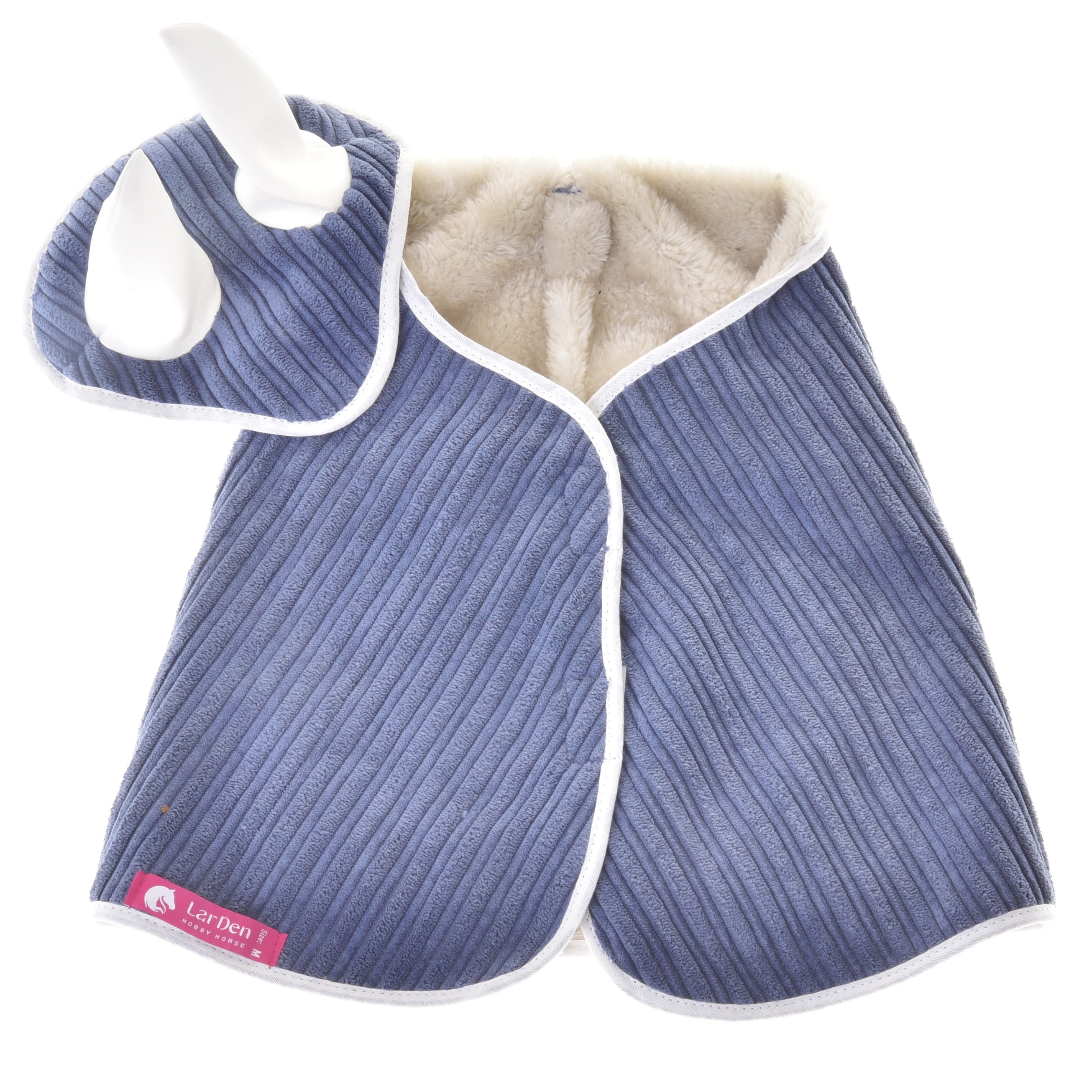 Our Hobby Horse ear bonnet and blanket sets are available in sizes S and M and fit LarDen horses perfectly. Simply choose the right size for your horse! If you're not sure whether it's the right size or you have a different Hobby Horse, take a look at the detailed measurements in the picture.