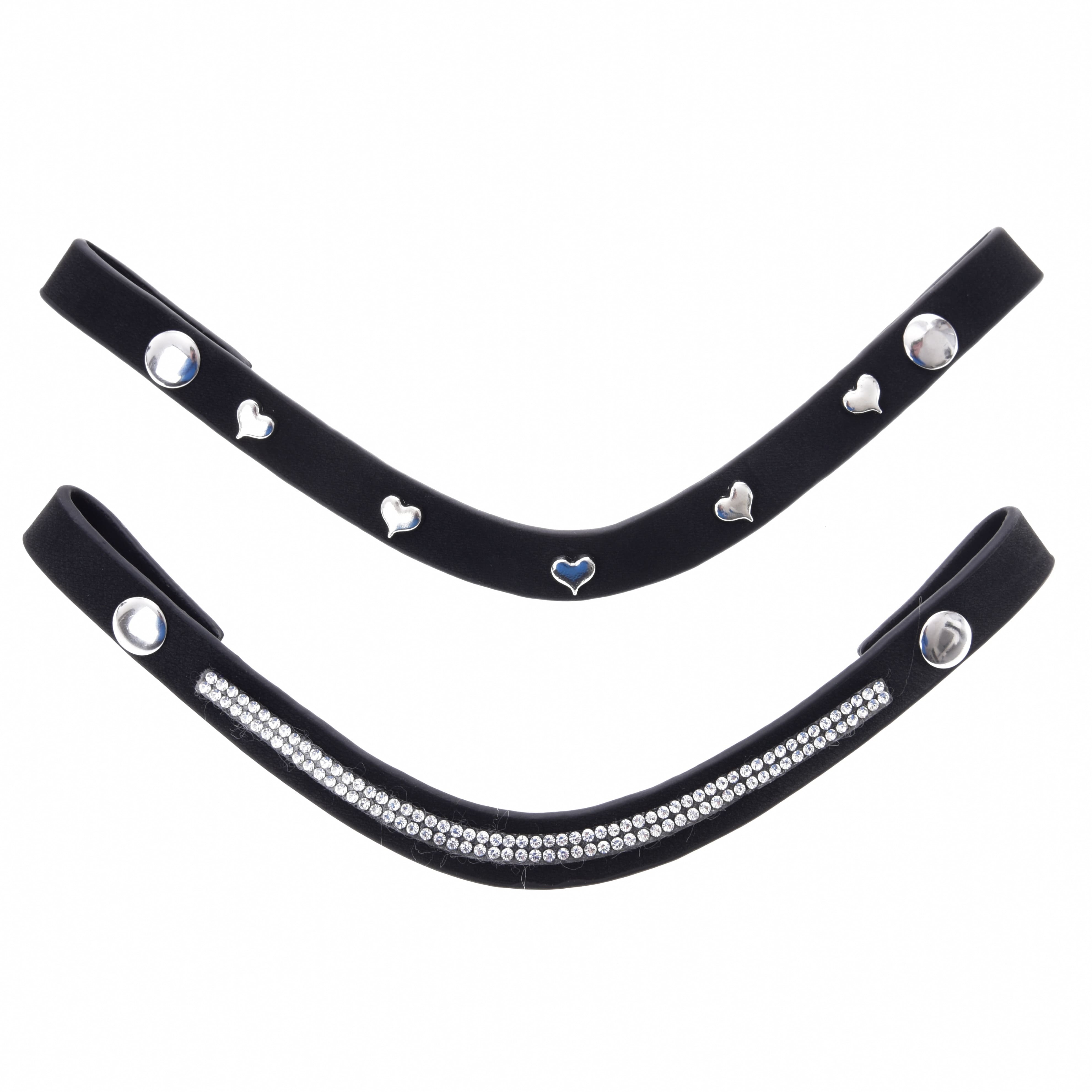 Elegant bridle with an English lined combined noseband. The removable strap easily converts it into a plain noseband. The detachable browbands with sparkling decorative stones makes this bridle truly eye-catching. Comes with detachable reins.