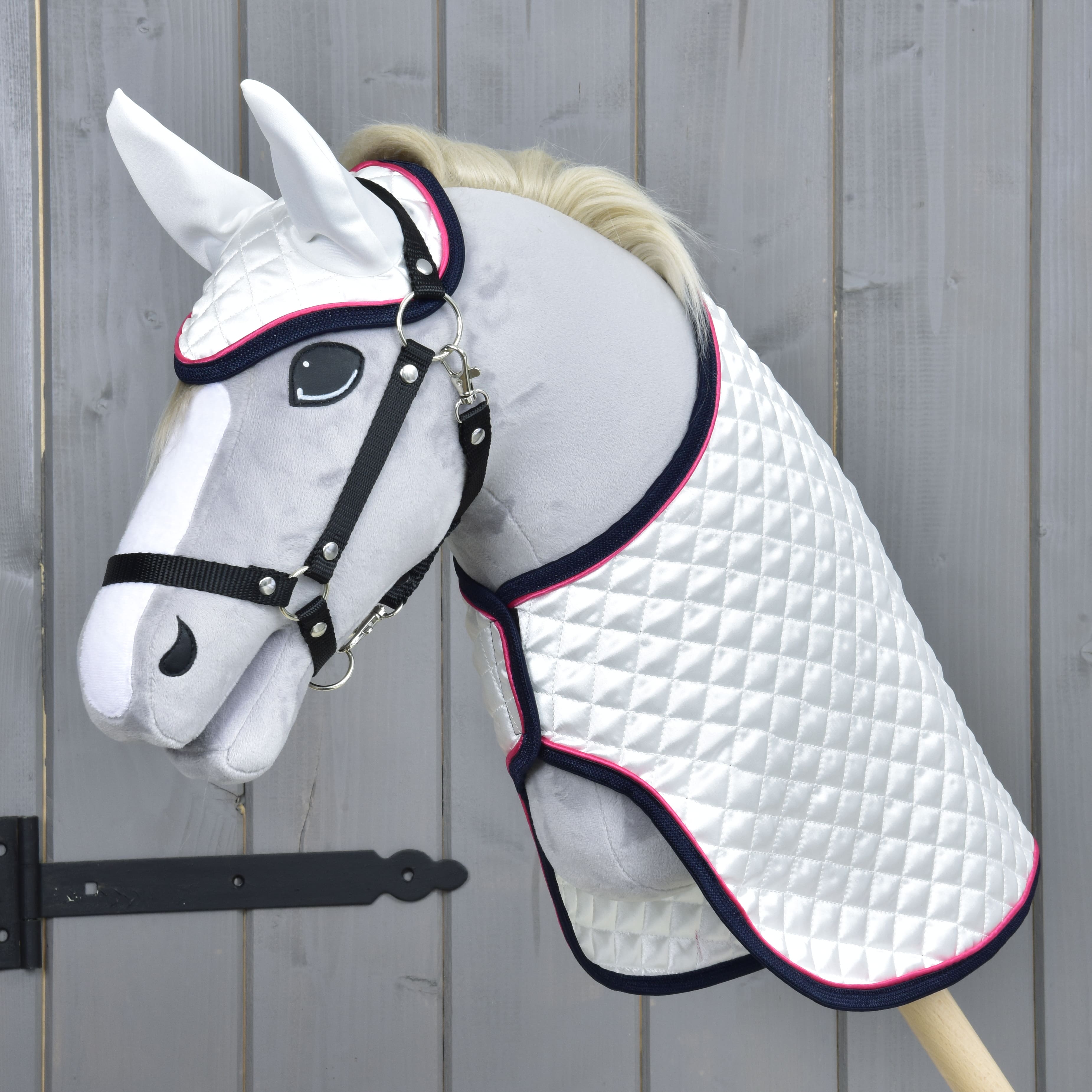 Beautiful blanket and ear bonnet set for your Hobby Horse that not only serves as a decoration for your horse, but also keeps him warm and protects him from pesky insects