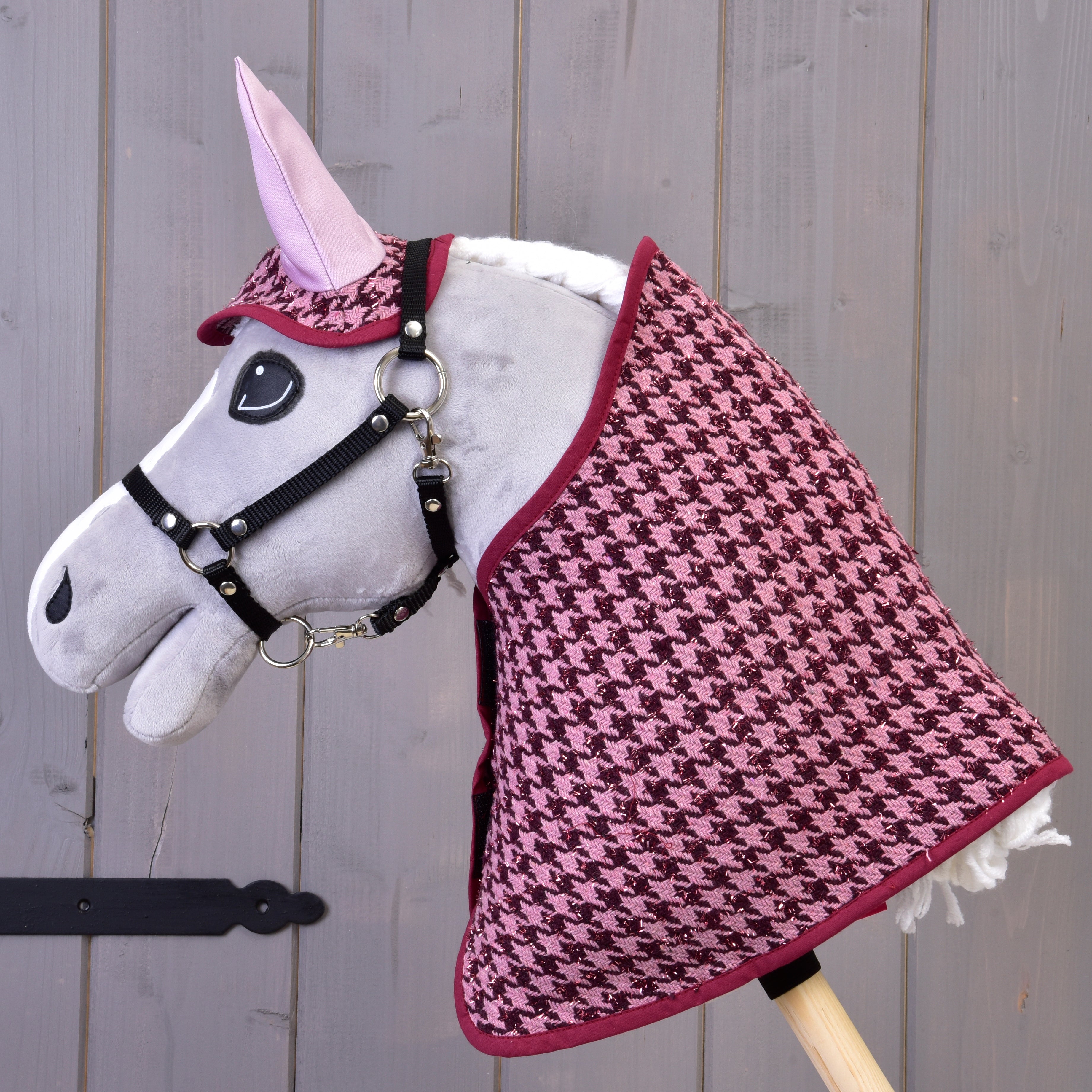 Beautiful blanket and ear bonnet set for your Hobby Horse, which not only serves as a decoration for your horse, but also keeps it warm.