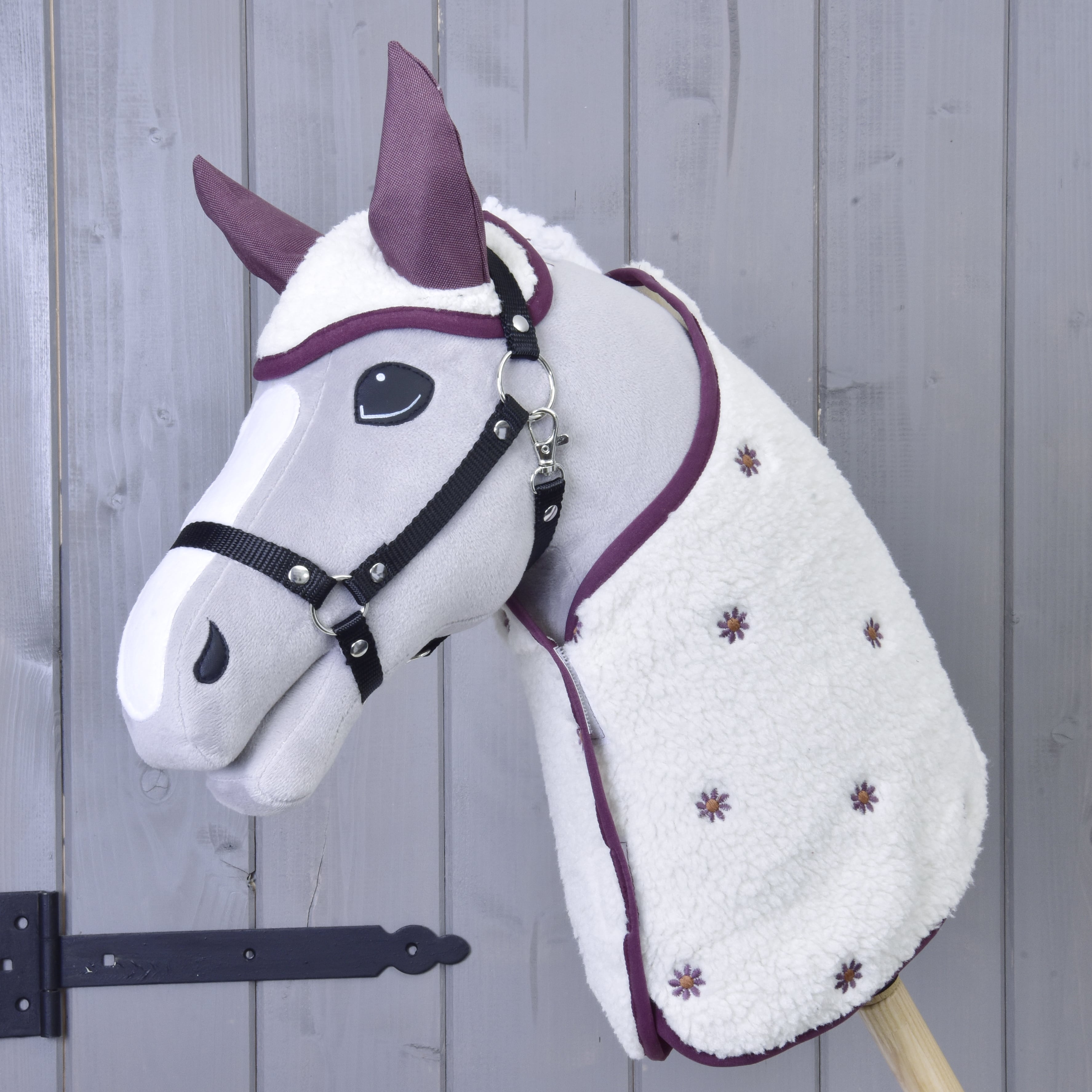 Beautiful blanket and ear bonnet set for your Hobby Horse that not only serves as a decoration for your horse, but also keeps him warm and protects him from pesky insects