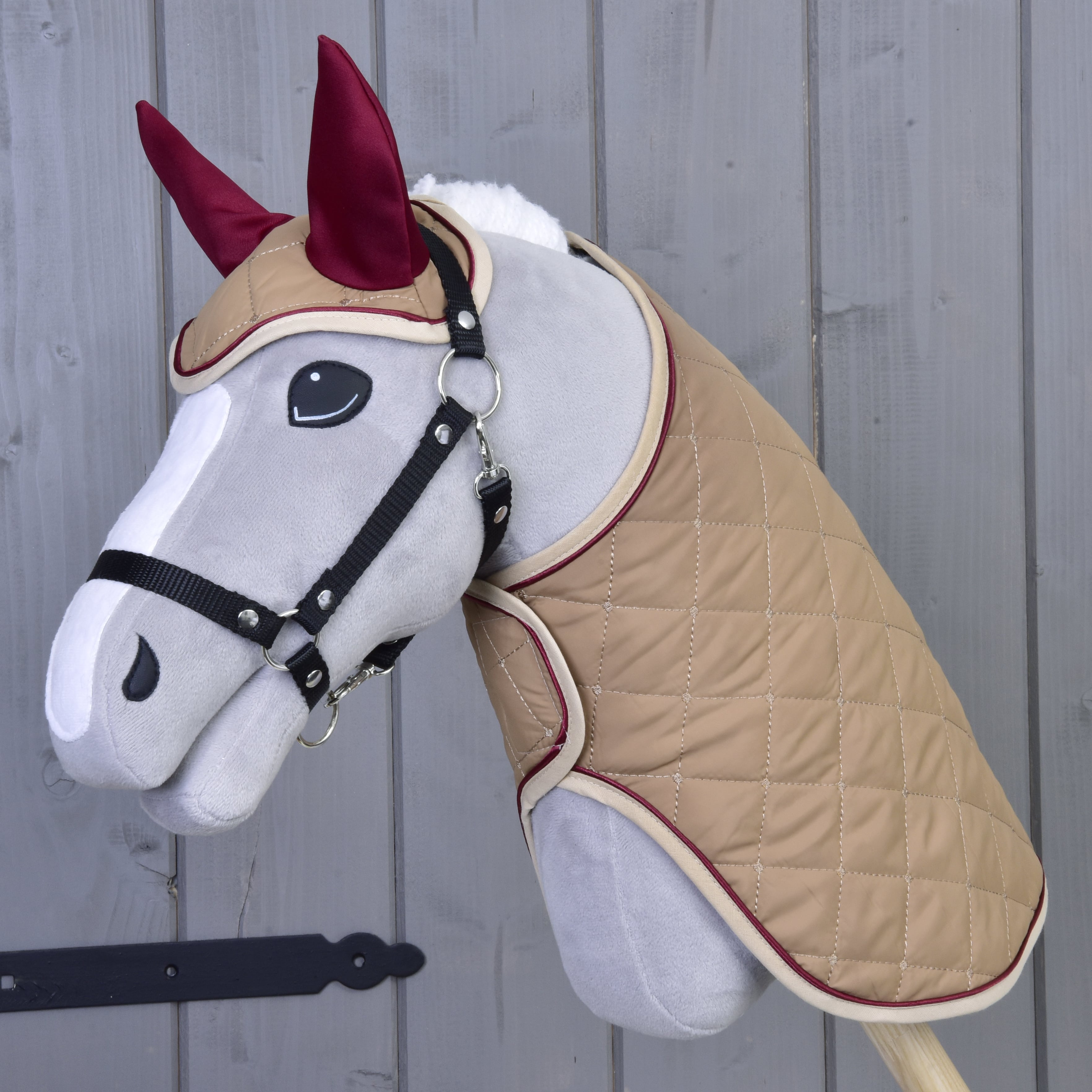 Beautiful blanket and ear bonnet set for your Hobby Horse that not only serves as a decoration for your horse, but also keeps him warm and protects him from pesky insects